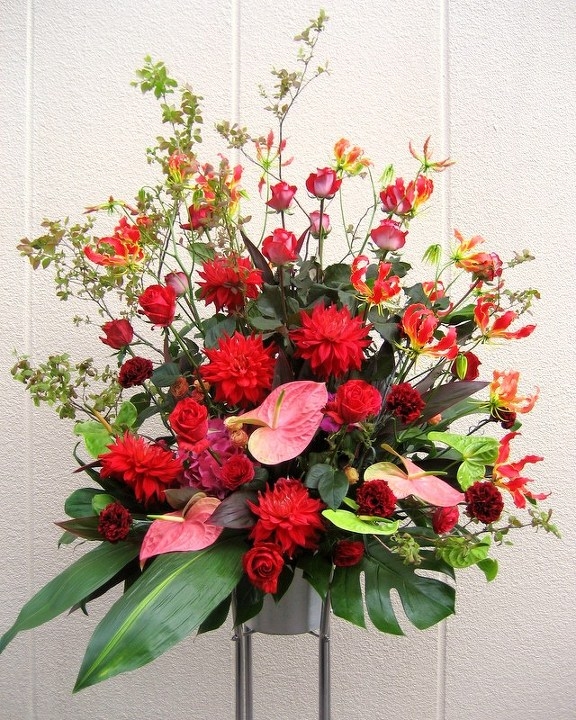赤系のスタンド花