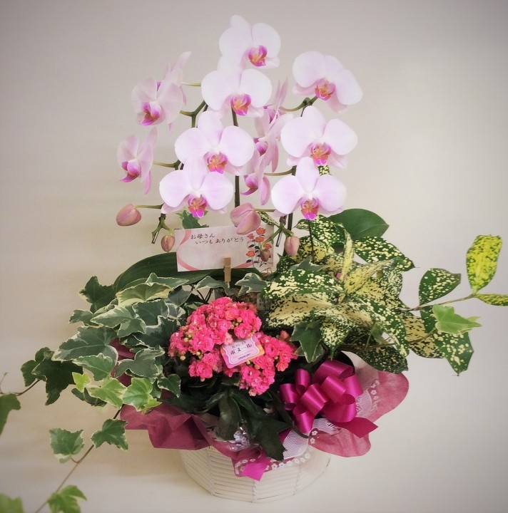 胡蝶蘭、ミニ胡蝶蘭、リーガスベゴニア、アジサイ、カーネーションなど豊富にご用意しております